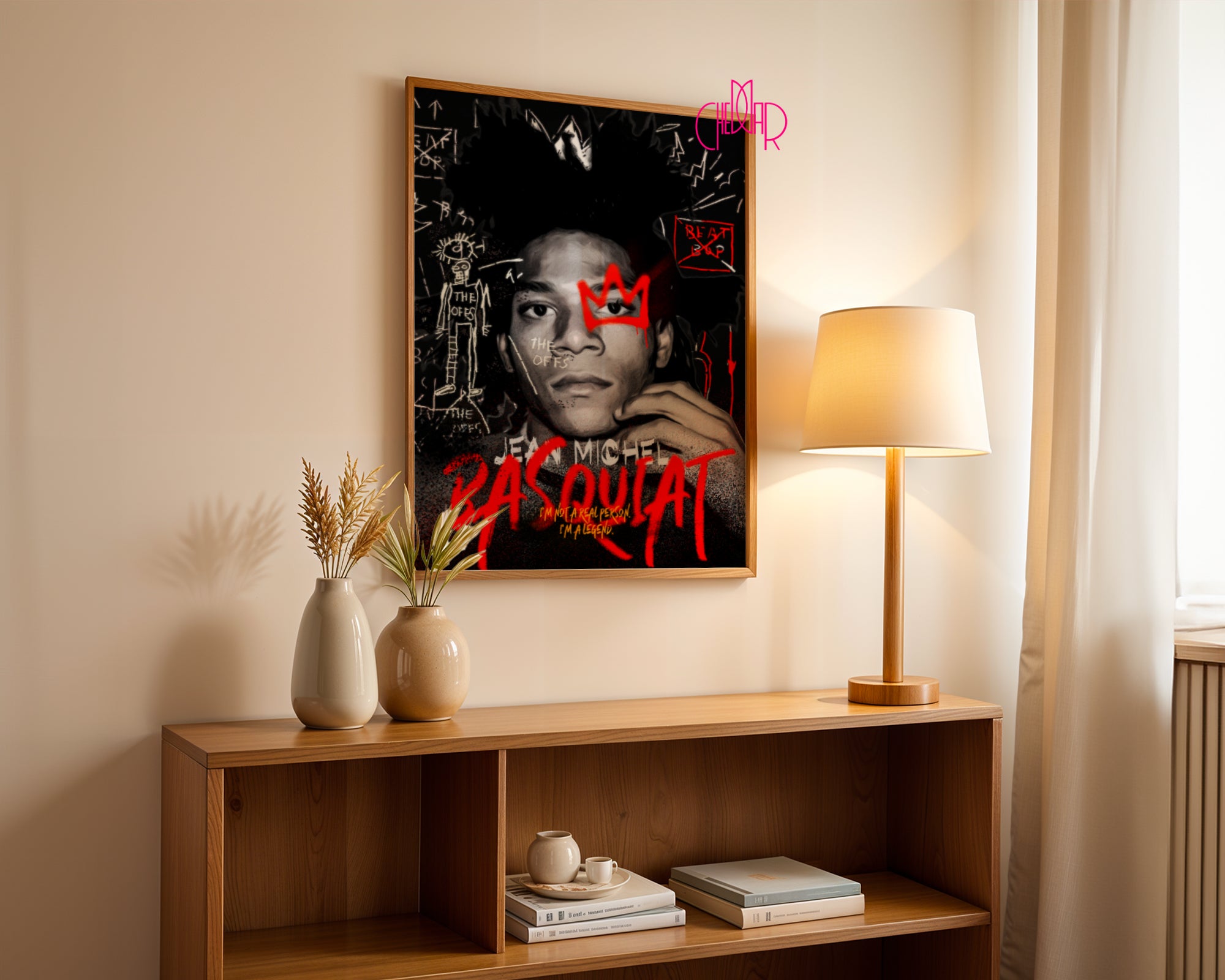 Authentic Portrait : A striking Basquiat photograph that adds elegance and historical context to the interior.
