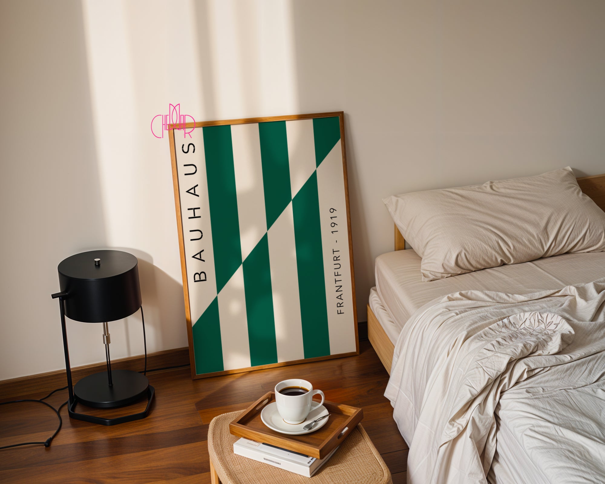 This minimalist Bauhaus Frankfurt 1919 poster is inspired by classical modernism and the geometric design of the Bauhaus school. Simple forms, contrasting stripes, and timeless colors create an elegant wall decoration for modern interiors.