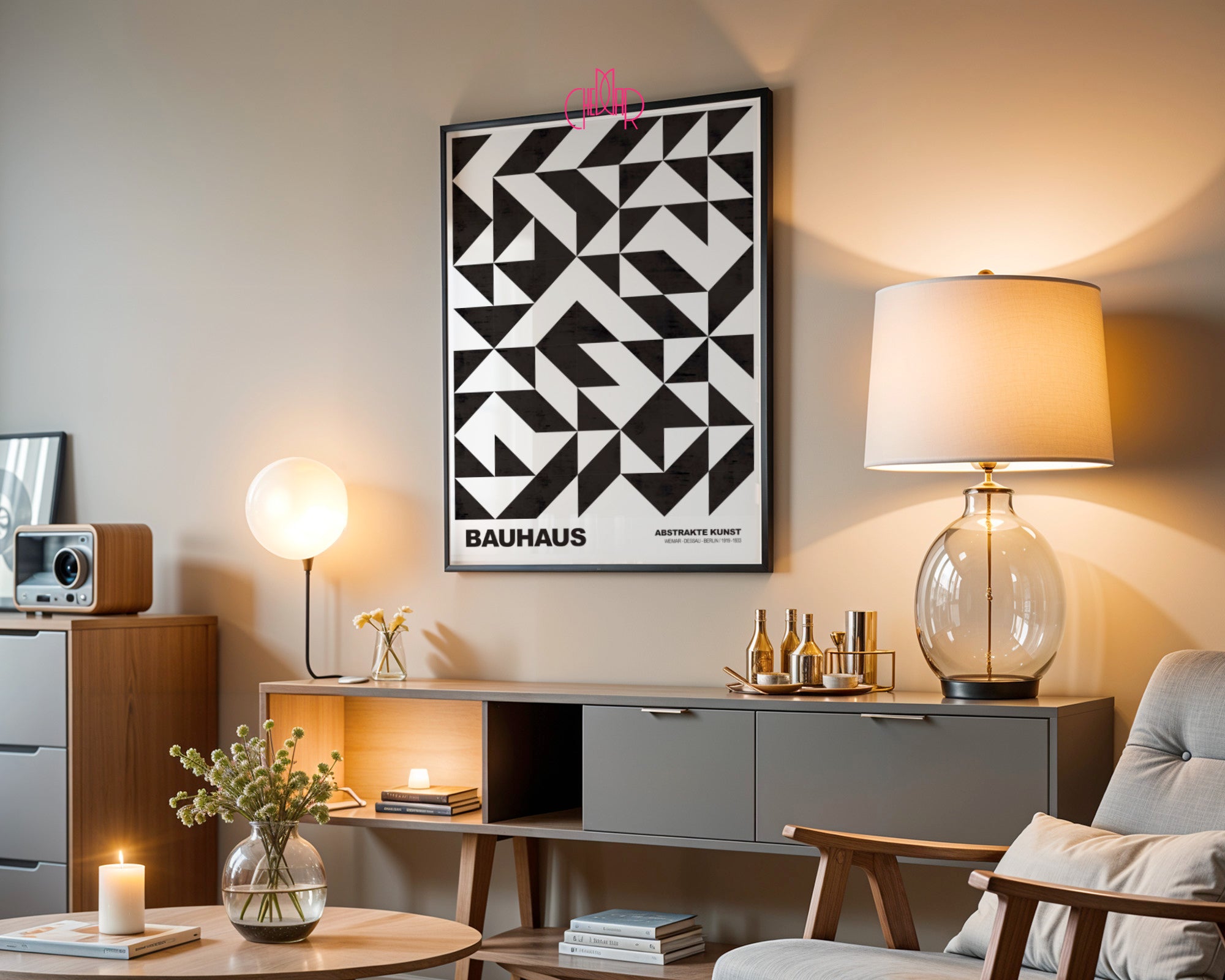 Collectible Typography: The "BAUHAUS" inscription and historical dates at the bottom give the graphic the feel of an authentic, gallery-quality print.