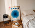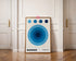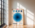 Transport to a world of absolute form with one of the most soothing prints from the Bauhaus collection. This unique poster depicts a series of concentric circles in gradations of blue—from light sky blue, through saturated cobalt, to deep navy blue in the center. The composition is completed by four smaller spheres at the top, creating a rhythmic visual band against a refined, creamy white background.